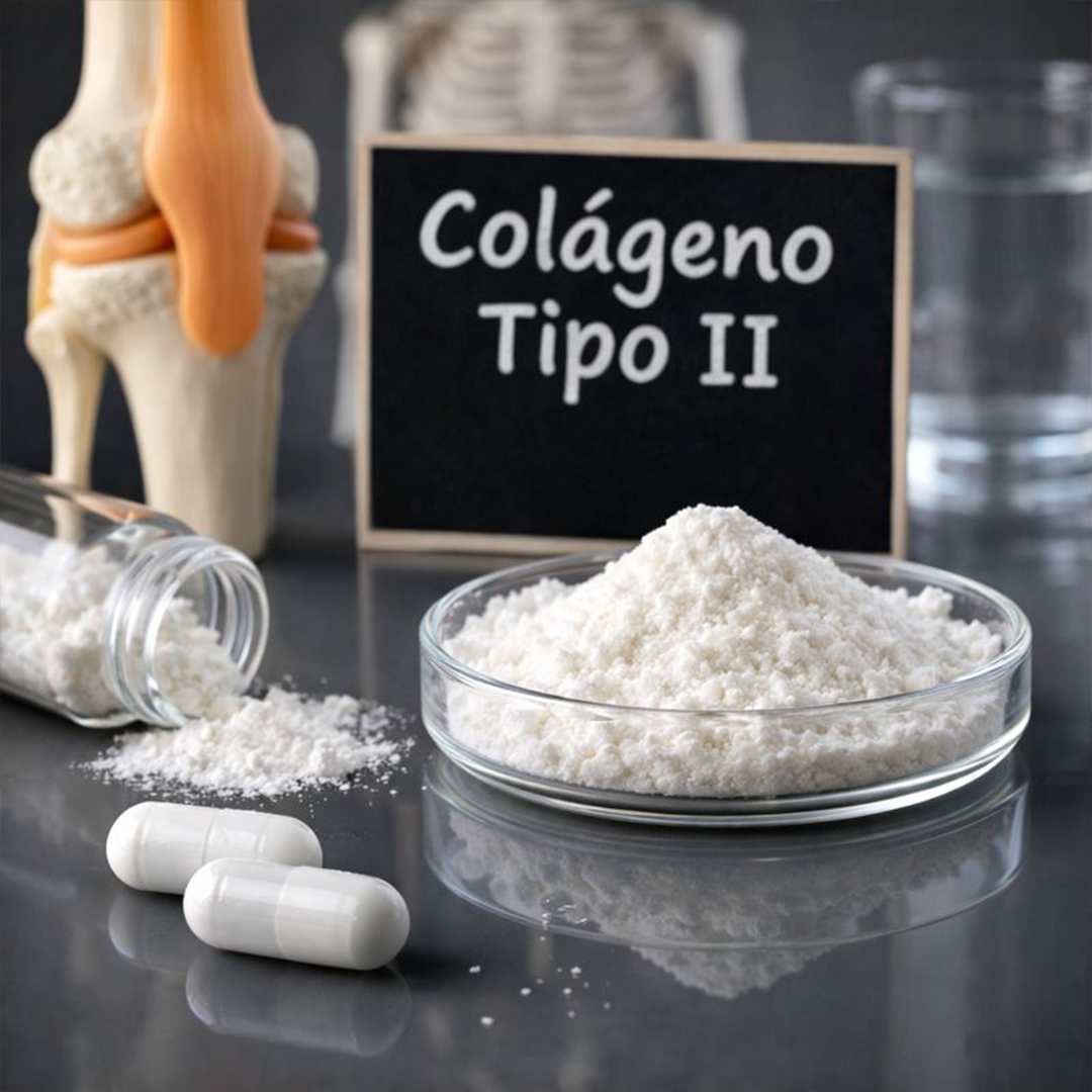 Colágeno tipo II não desnaturado, fundamental para a integridade da cartilagem.