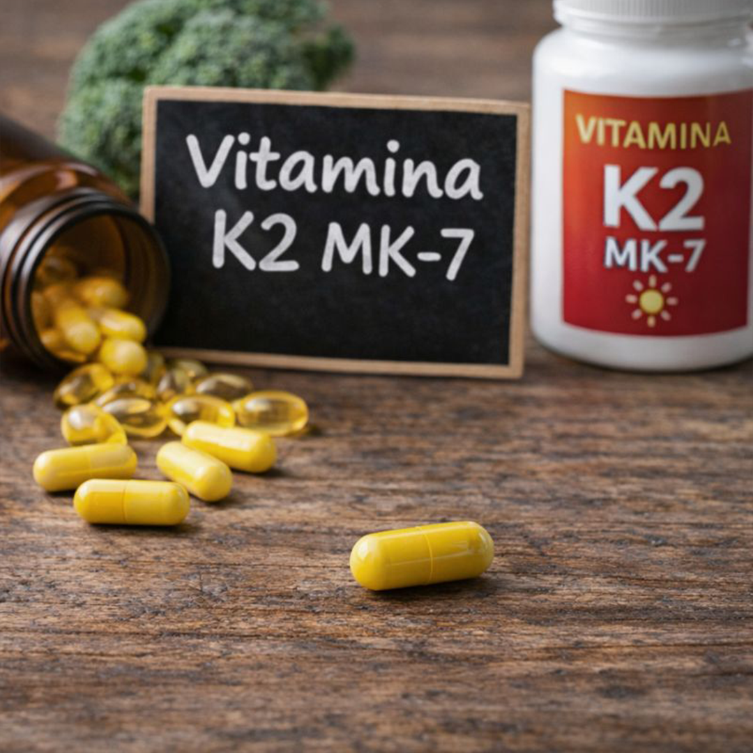 Direciona o cálcio para os ossos, evitando depósitos indevidos.